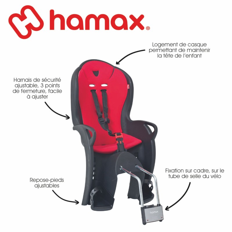 La fixation supplémentaire porte-bébé sans clé de la marque HAMAX permet au porte-bébé d'être déplacé d'un vélo à l'autre en seulement quelques secondes. Elle est idéale pour les sièges enfant HAMAX Kiss/Smiley et Sleepy/Siesta. Le retrait du siège est simple grâce au bouton de dégagement rapide.