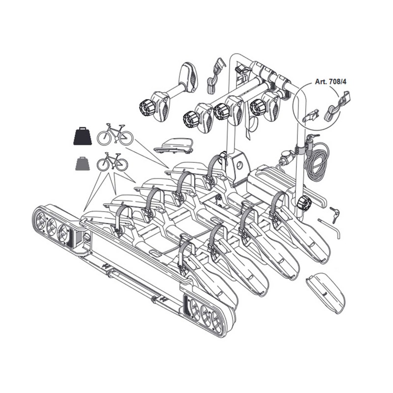 Ce kit de câble d'inclinaison Art. 708/4 est compatible avec le porte-vélo sur attelage Pure Instinct 4 vélos PZ708-4WEB