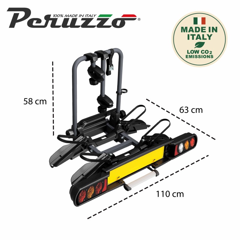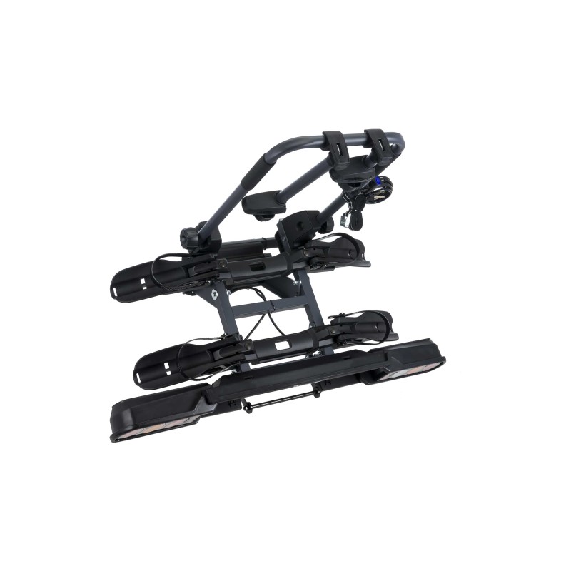 Le porte-vélo universel sur attelage PURE INSTINCT de la marque PERUZZO vous permet de transporter jusqu’à 2 vélos (60kg maximum). Le porte-vélo peut transporter des vélos électriques ainsi que des Fat Bike. Chaque vélo est maintenu par un bras. Il y a un câble antivol à clé fourni. Ce porte-vélo est inclinable grâce à une pédale permettant d’accéder au coffre très facilement sans avoir à tout démonter. Livré entièrement assemblé, il se plie ce qui permet un rangement simple et rapide.