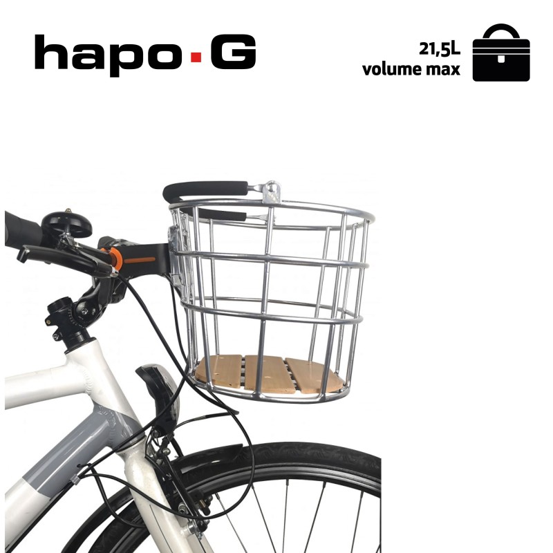 Ce panier acier XXL de la marque HAPO G s'installe en un clic grâce à une fixation MTS3. Il permet le transport d'un volume important, jusqu'à 19 litres et supporte une charge jusqu'à 5 kg.Sa anse de portage permet à l'utilisateur de passer en version pédestre !