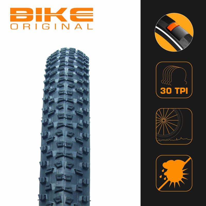 - Flancs renforcés en construction nylon 30 TPI (au lieu de 20 TPI sur les pneus traditionnels)