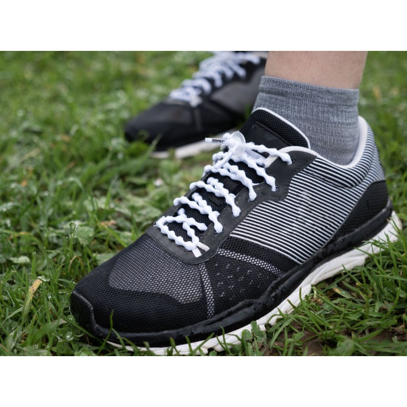 Les nœuds ronds traverseront un œillet mais pour cela il faudra suffisamment les étirer pour réduire le diamètre du nœud de blocage. En fonction de l'indice de compression souhaité *, il faudra relâcher "l'étirement" des nœuds; répétez le processus d'ajustement au niveau de chaque œillet pour définir l'ajustement de la chaussure.