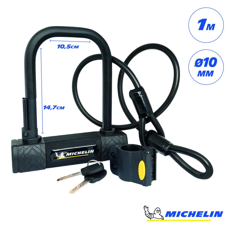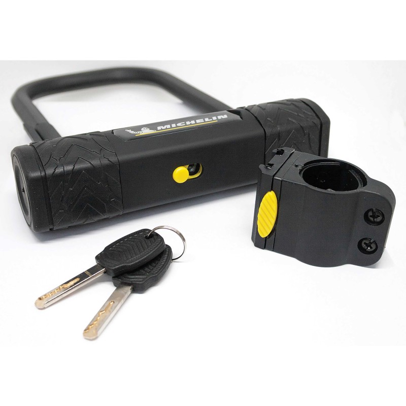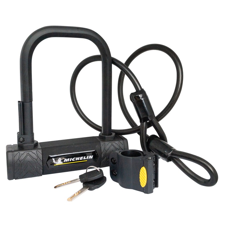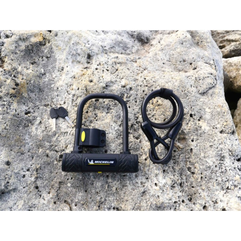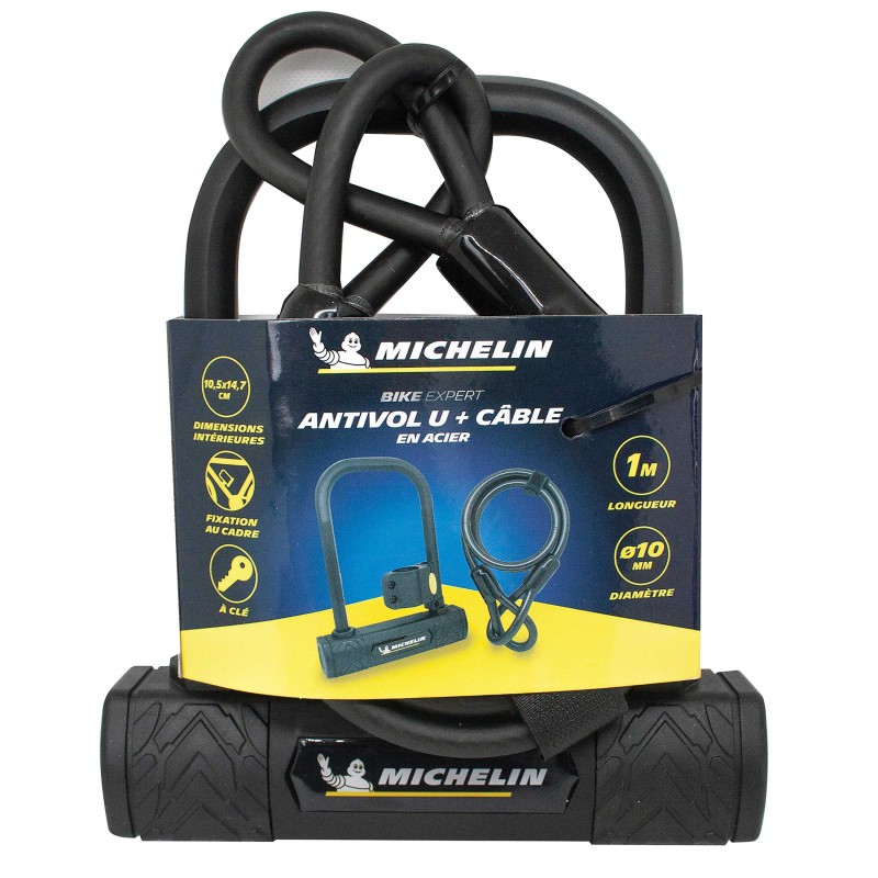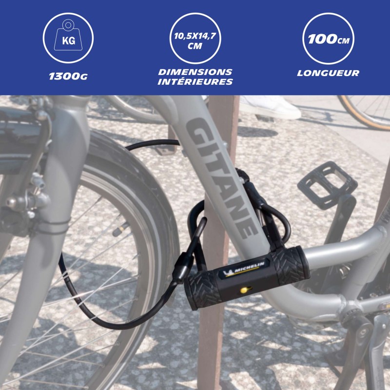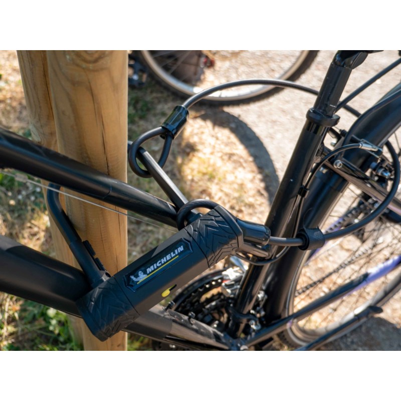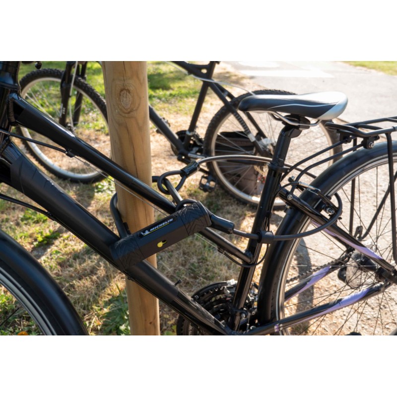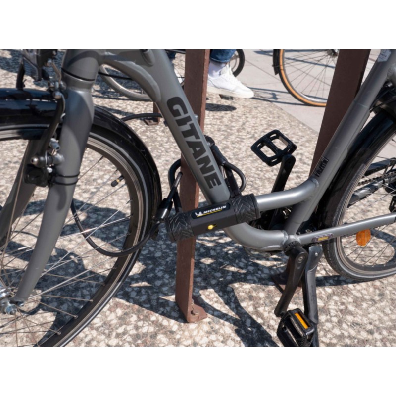 L'antivol U avec câble de la marque MICHELIN est l'accessoire idéal pour sécuriser son vélo ou sa trottinette pendant les déplacements urbains.