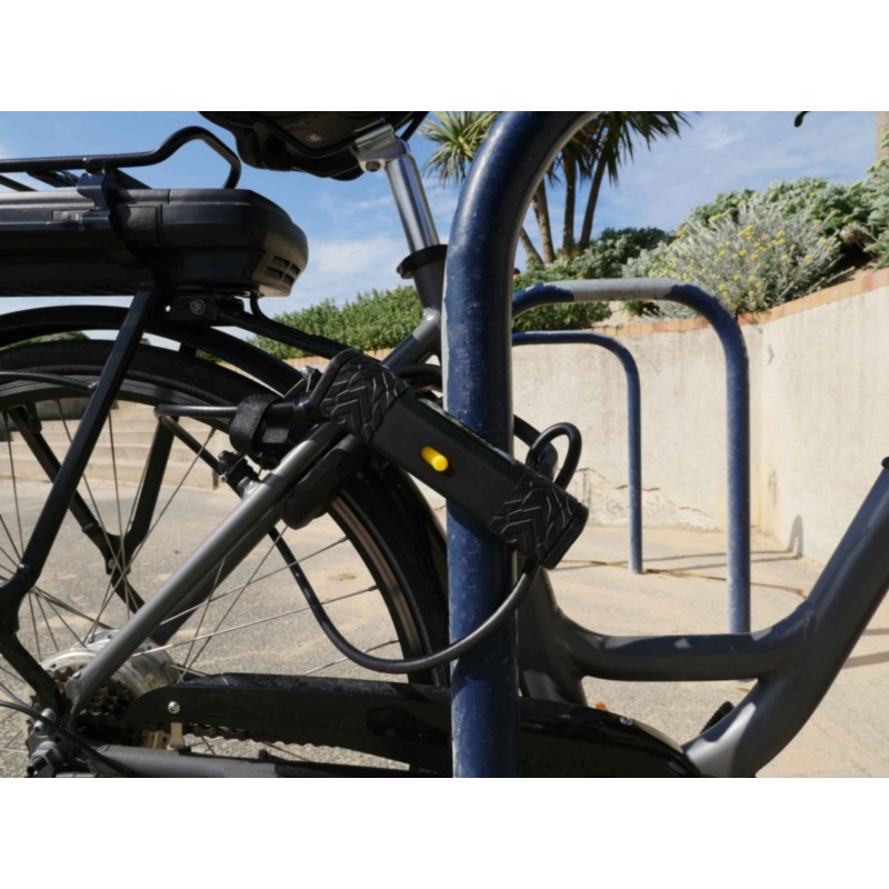 Il offre une protection optimale grâce au U et à son câble pour sécuriser le vélo sur plusieurs points d'accroche.