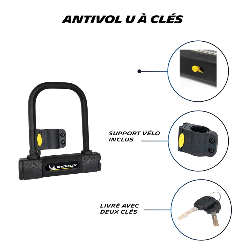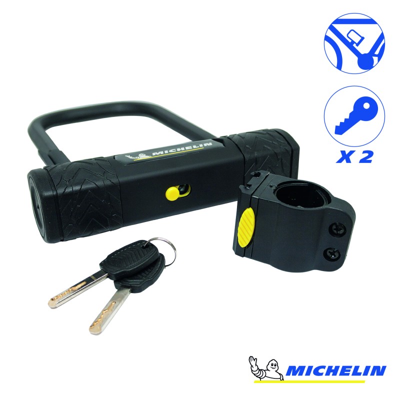 L'antivol U 245 mm de la marque MICHELIN offre une protection maximale contre le vol lors d'arrêts de moyenne ou longue durée.Sa forme permet d'attacher le cadre du vélo ainsi que la roue pour une sécurité renforcée. Son tout nouveau design, s'inspire des pneus iconiques de chez Michelin.
