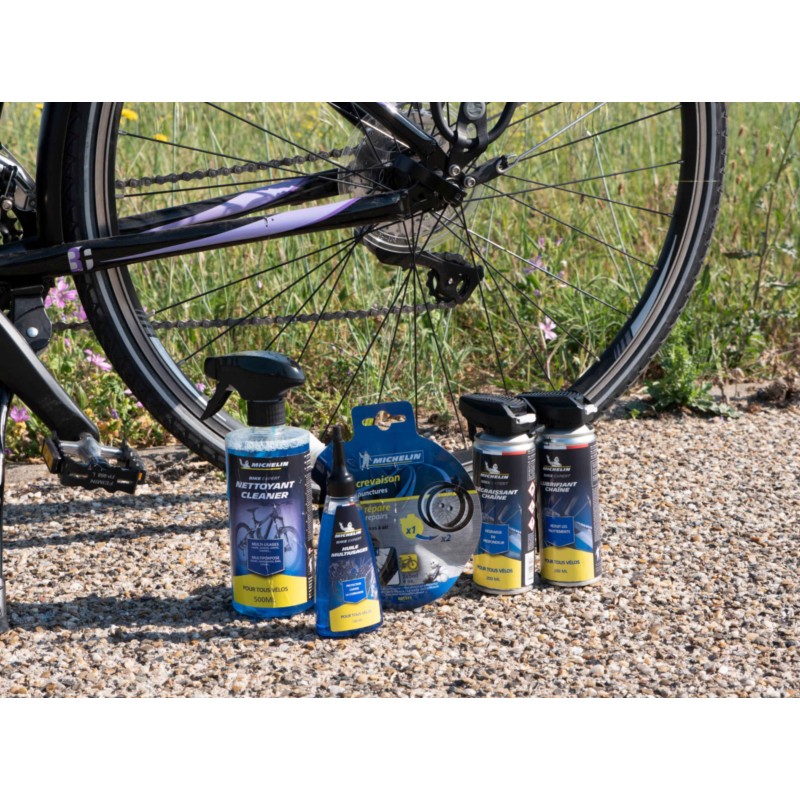 Le nettoyant vélo de la marque MICHELIN est conçu pour nettoyer toutes les parties du vélo.Avec sa nouvelle formule parfumée aux agrumes, il dégraisse et nettoie le cadre, les roues, les jantes, la chaîne, le guidon.Il préserve le vélo et ne laisse pas de trace.Produit fabriqué en France.