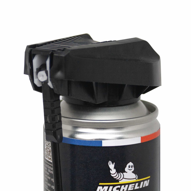 Cet aérosol de la marque MICHELIN est spécialement conçu pour réparer et regonfler un pneu crevé sur votre vélo sans le démonter.Vous pourrez facilement l'utiliser, sans outils, grâce à son diffuseur à rotule et à son embout spécifique pour les vélos.Ce produit est fabriqué en France.Cette solution est provisoire, une crevaison peut avoir entraîné...