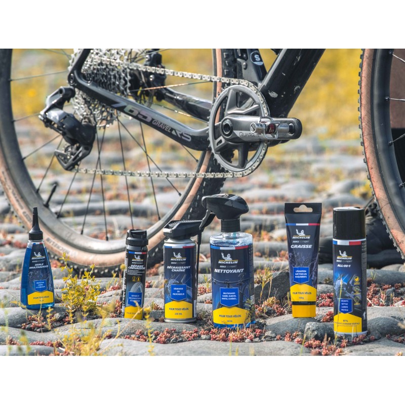 La graisse au lithium de la marque MICHELIN est parfaite pour l'entretien de toutes les pièces mécaniques comme les roulements, boitier, tige de selle, direction...Elle assure une lubrification haute performance.
