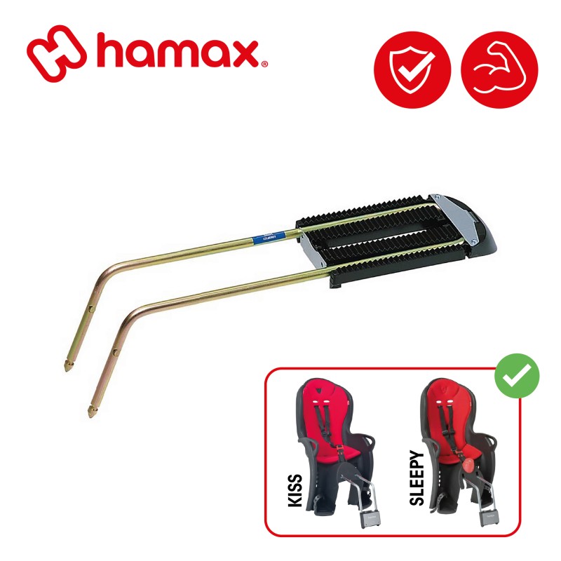 La barre supplémentaire Xtra bar de la marque HAMAX permet de s'adapter aux sièges Kiss et Sleepy avec des tubes traversant qui gênent.
