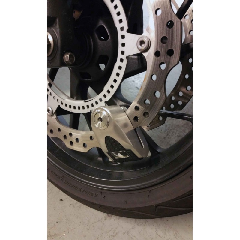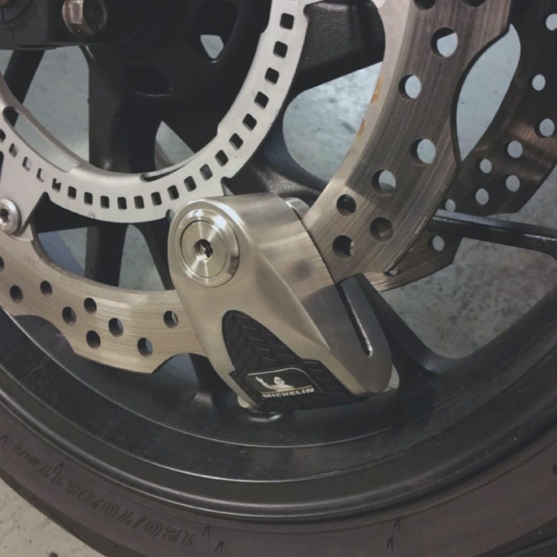 Il se fixe au disque de frein de la moto avec un niveau de sécurité de 9/10.