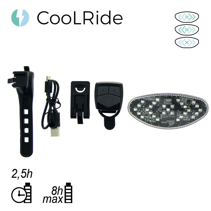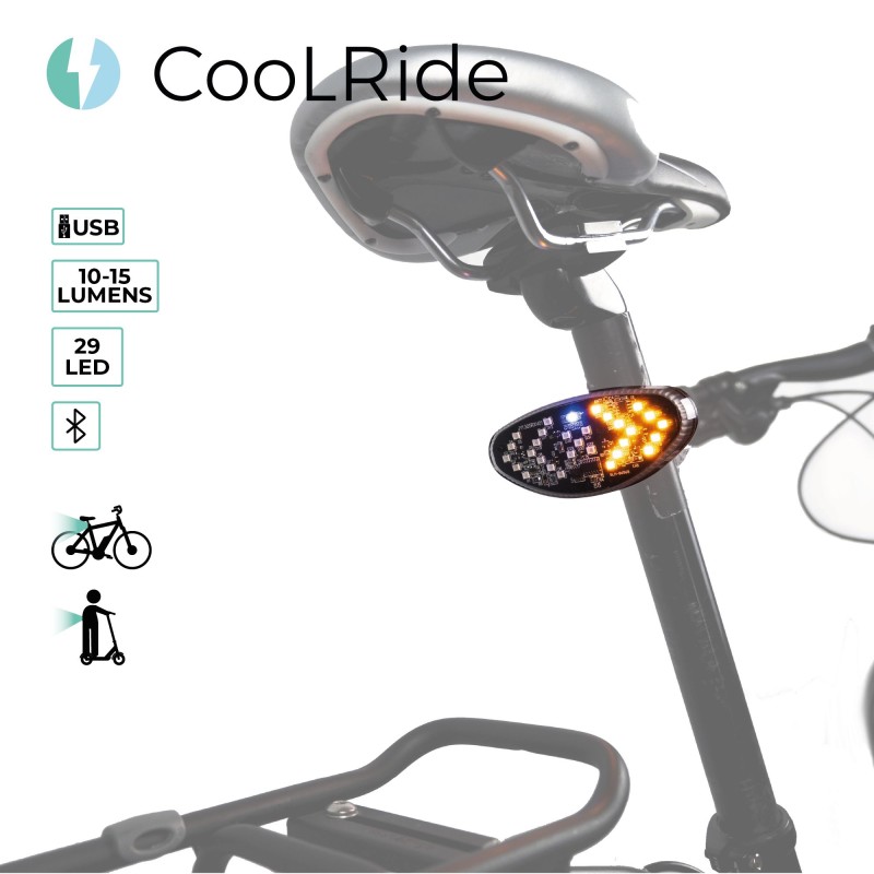 Le clignotant arrière rechargeable USB de la marque COOL RIDE permet aux cyclistes de bien être vus de nuit comme de jour dans leurs déplacements. Multi-usages, il combine feu arrière classique et clignotants. Il se commande par boitier fixé au guidon qui communique sans fil par transmission bluetooth.