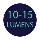 • Flux lumineux : 10-15 lumens.