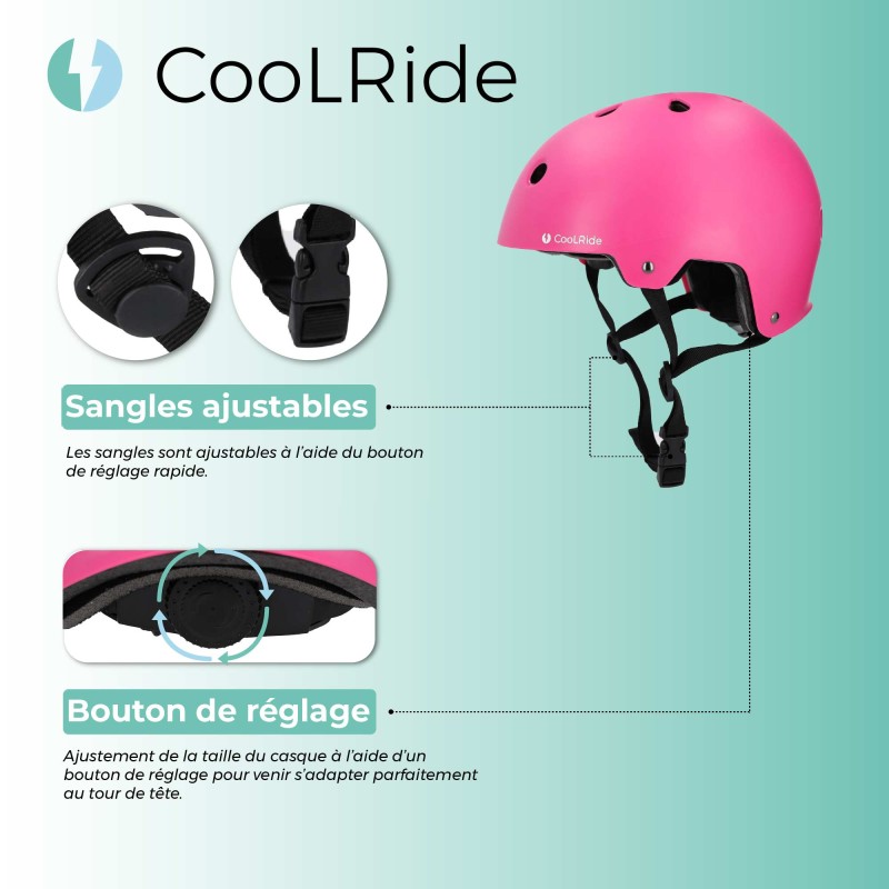 Le casque adulte de la marque COOL RIDE est aéré et confortable. Il est facilement réglable grâce à sa molette quickturn et aux lanières latérales de sécurité. Il est idéal pour les cyclistes, les utilisateurs de planches à roulettes ainsi que les amateurs de trottinettes et de patins à roulettes. Il est équipé d'un éclairage arrière de 6 LEDs...