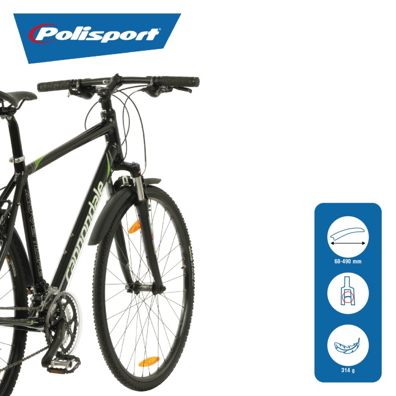 La paire de garde-boue avant et arrière Cross Country Evo de la marque POLISPORT est idéale pour les vélos VTT en 26’’, 27,5" et 29’’ à freins à disques ou à V-brake. Ils protègent efficacement les cyclistes des projections de boue grâce à une grande largeur de recouvrement de 85 mm. Ils sont légers et faciles d’utilisation.Le garde-boue avant se...