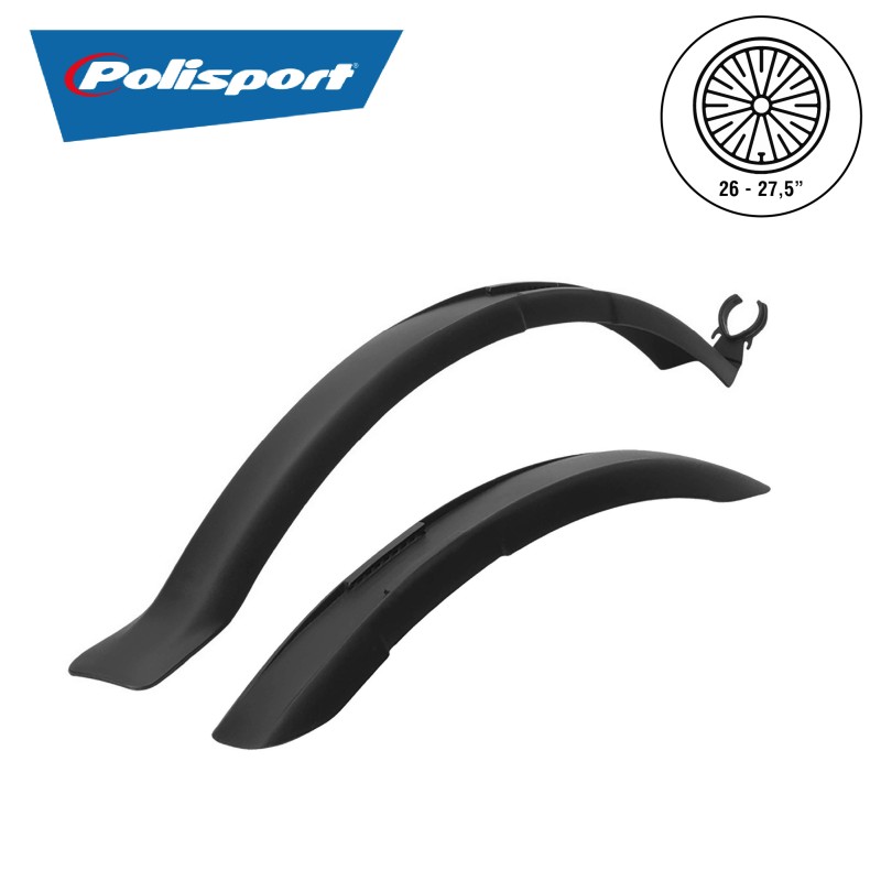 La paire de garde-boue avant et arrière NEVADA de la marque POLISPORT convient aux vélos allant de 26" à 27,5" pour une pratique tout terrain, urbain ou cross. Ils protègent efficacement les cyclistes des projections de boue grâce à une largeur de recouvrement allant de 60 mm. La kit de fixation est inclus.
