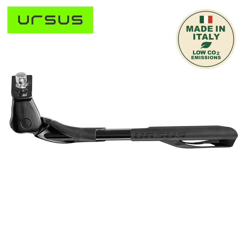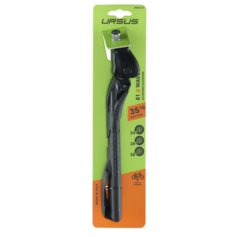 La béquille centrale WAVE de la marque URSUS se fixe sous le pédalier. Conçue en aluminium, elle supporte une charge jusqu'à 35 kg.