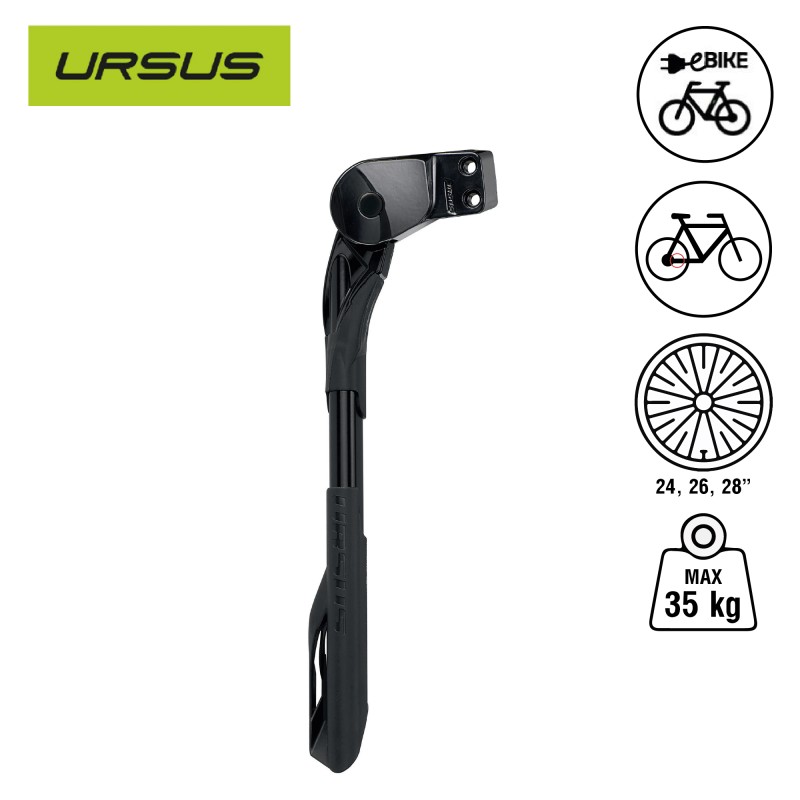Elle est compatible avec les vélos et les vélos électriques en 24, 26 et 28". La longueur de la béquille est ajustable grâce à une vis de réglage.