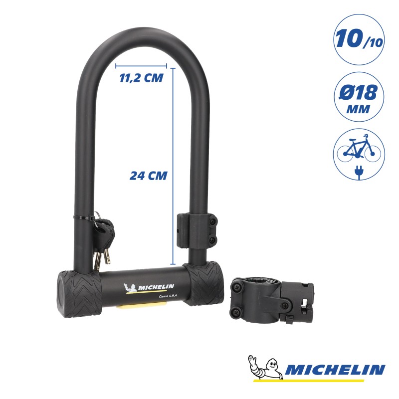 Caractéristiques de l'Antivol U SRA à clés 112x240 mm ø 18 mm + support de la marque MICHELIN :