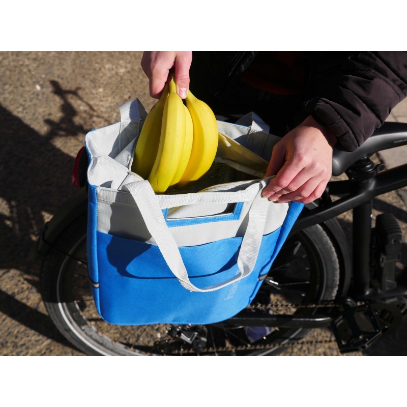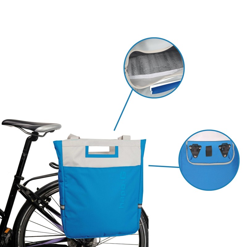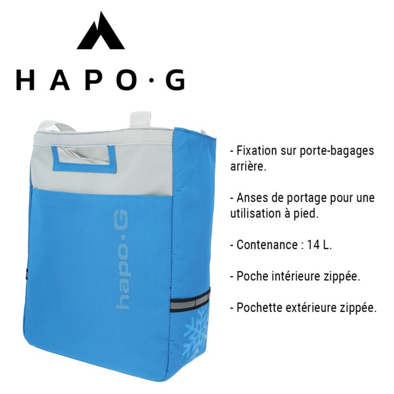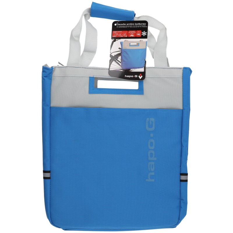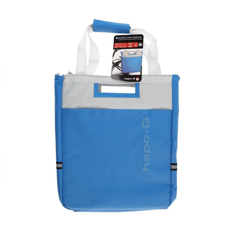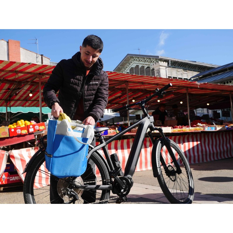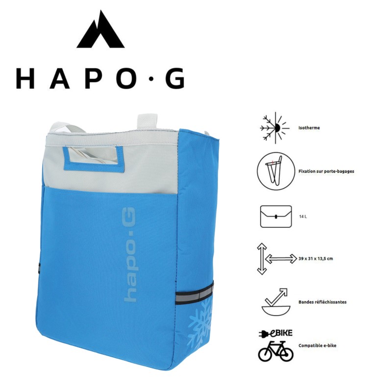 Cette sacoche isotherme de la marque HAPO G se fixe sur le porte-bagages arrière du vélo.