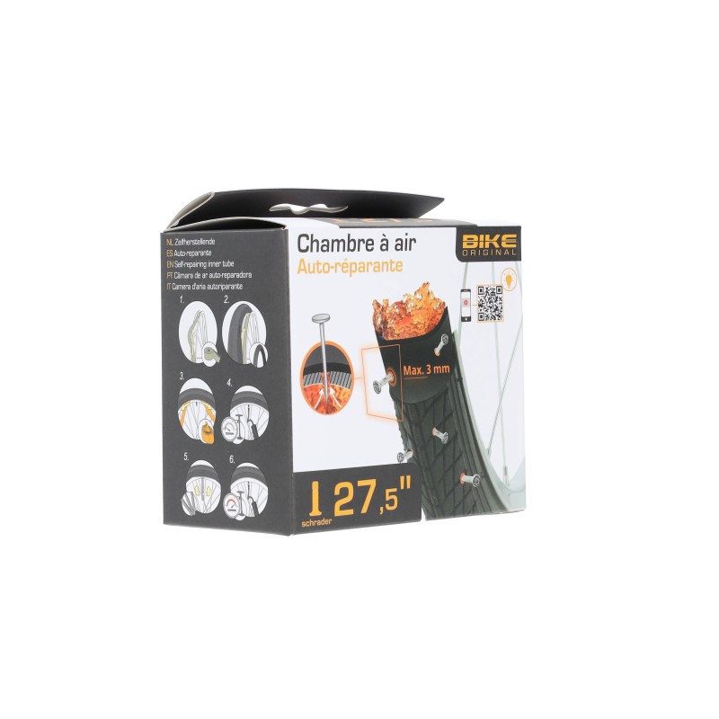Chambre à air auto-réparante 27.5’’ pour valve schrader contient un gel auto-réparant pour les perforations inférieures à 3 mm.