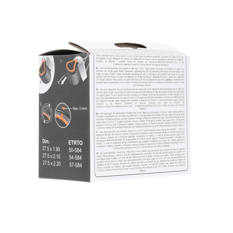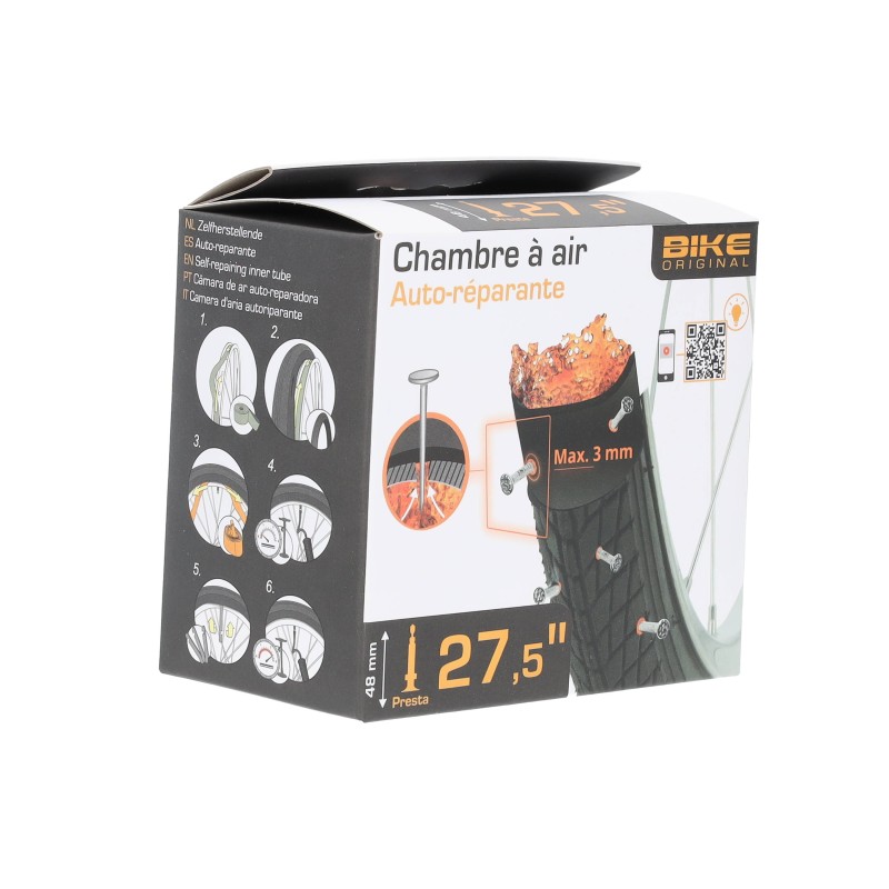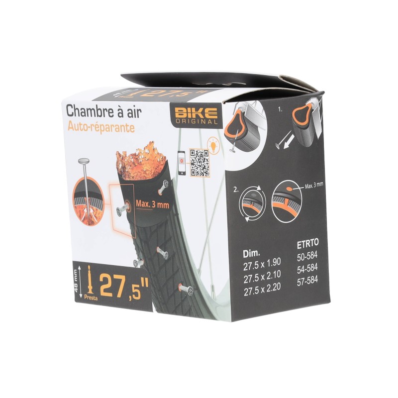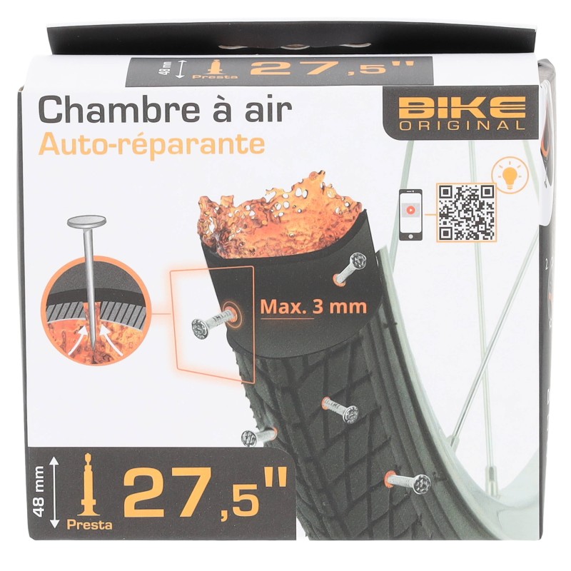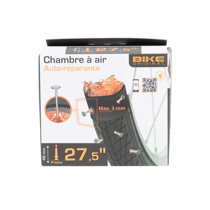 Chambre à air auto-réparante 27.5’’ pour valve presta contient un gel auto-réparant pour les perforations inférieures à 3 mm.