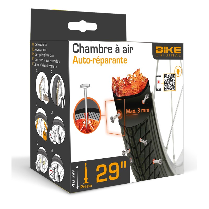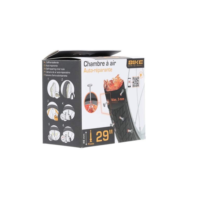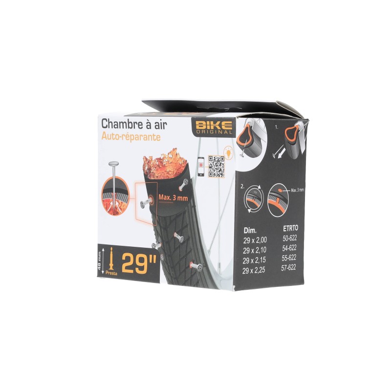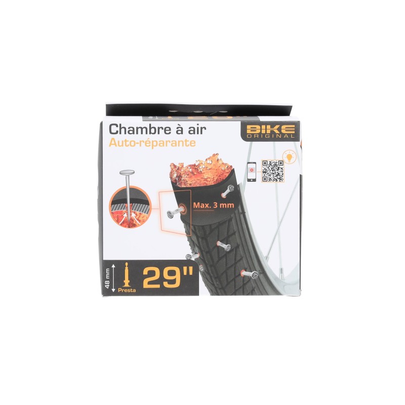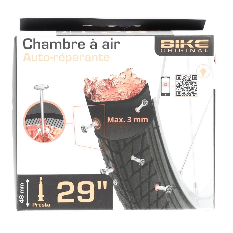 Chambre à air auto-réparante 29’’ pour valve presta contient un gel auto-réparant pour les perforations inférieures à 3 mm.