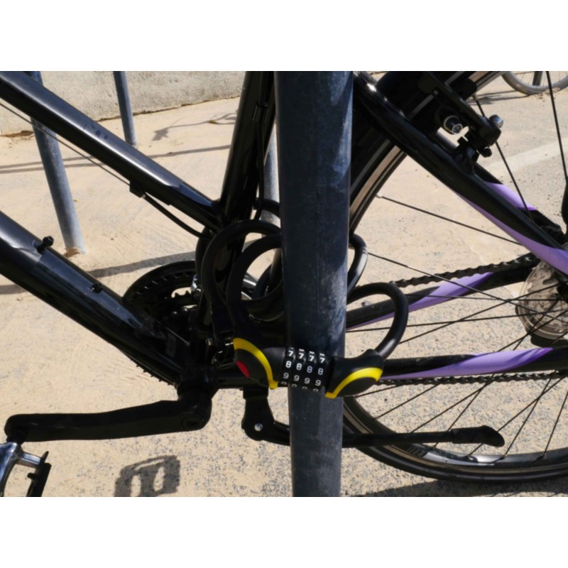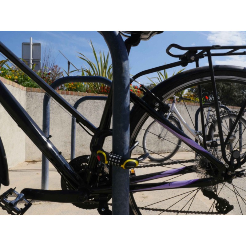 L'antivol spirale à code est conçu pour une utilisation quotidienne. Sa longueur utile est de 1,50 m et le diamètre de la gaine de 12 mm.