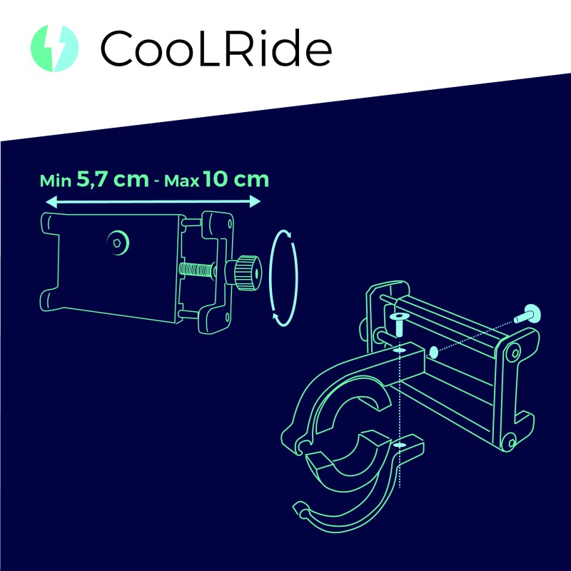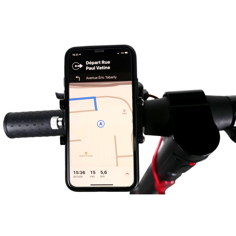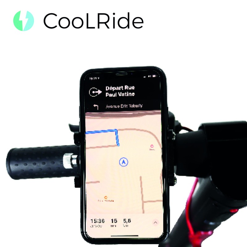 Le support smartphone de la marque COOLRIDE permet de fixer son téléphone de façon fiable pendant les déplacements en vélo ou en trottinette.