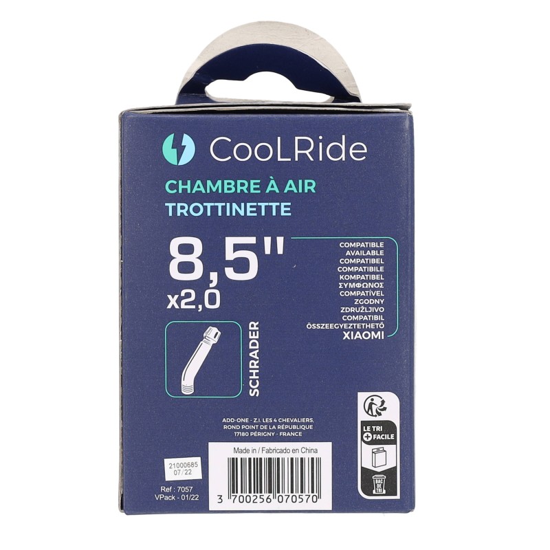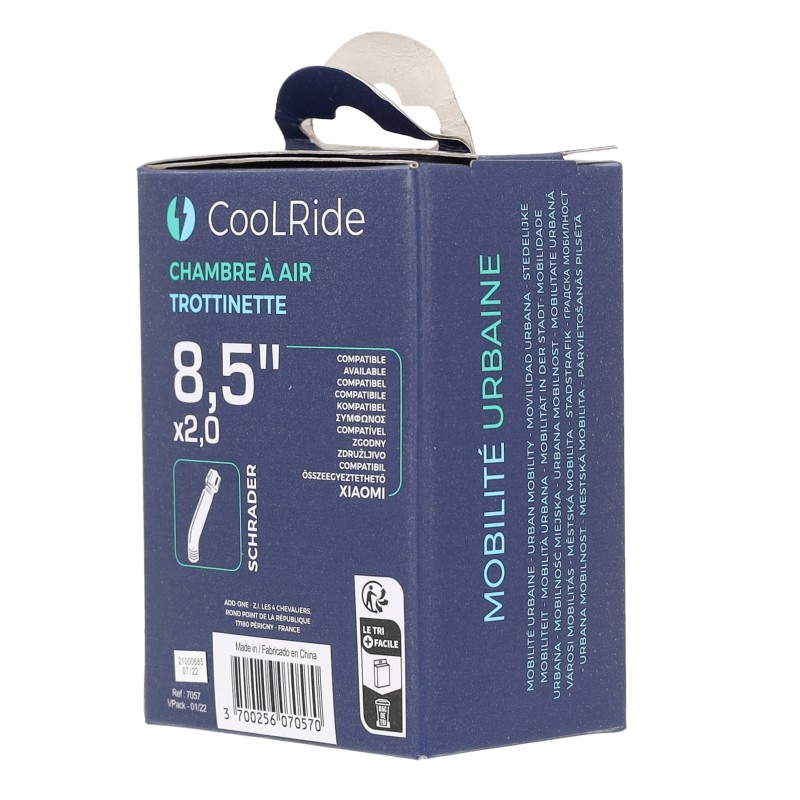 Chambre à air 8,5" valve Schrader coudée pour trottinette et e-trottinette