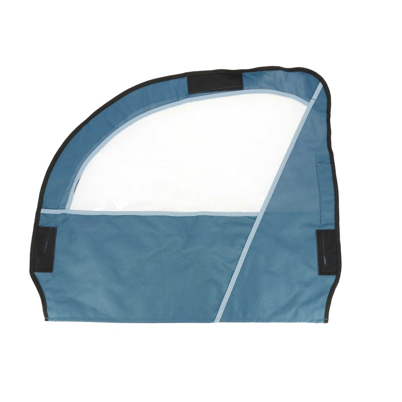 Le panneau latéral gauche vient se fixer à l'aide de scratch sur le côté droit de la remorque acier série 100 indigo (ref 4366). Côté intérieur, se trouve une petite poche faisant office de rangement idéal pour y placer son portefeuille, téléphone...