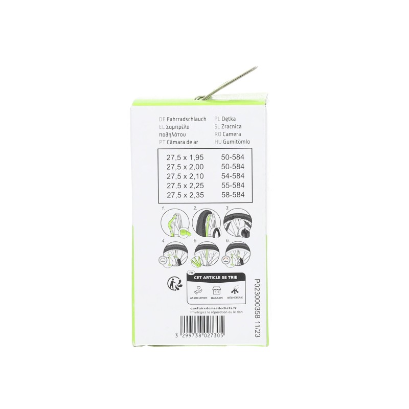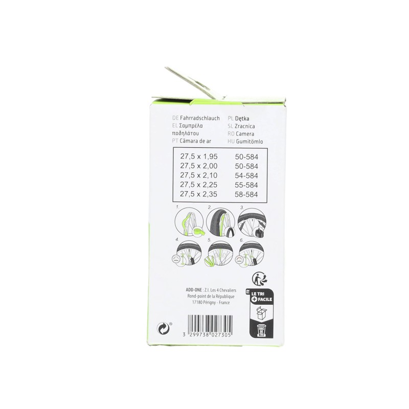 Chambre à air 27,5"x1,95/2,35. La chambre à air est équipée d'une valve PRESTA. Elle est idéale pour remplacer une ancienne chambre à air suite à une crevaison.Norme ETRTO 50/58-584.