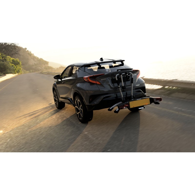 Ce porte-vélos haut de gamme dispose également de deux systèmes de verrouillage, l’un pour le vélo au porte-vélos et l’autre pour le porte-vélos à la boule d’attelage, grâce à l’utilisation de boutons de fermeture verrouillables.
