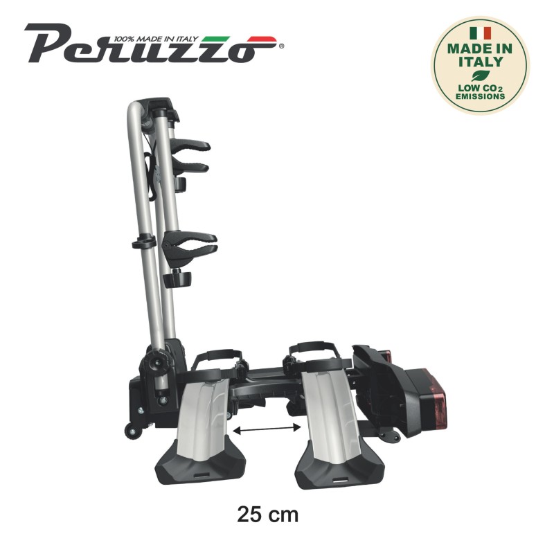 Le nouveau porte-vélos Atlantis est le premier porte-vélos de la gamme Peruzzo à être doté d’un système d’attache rapide « in line », un système de verrouillage rapide et pratique de la boule d’attelage.