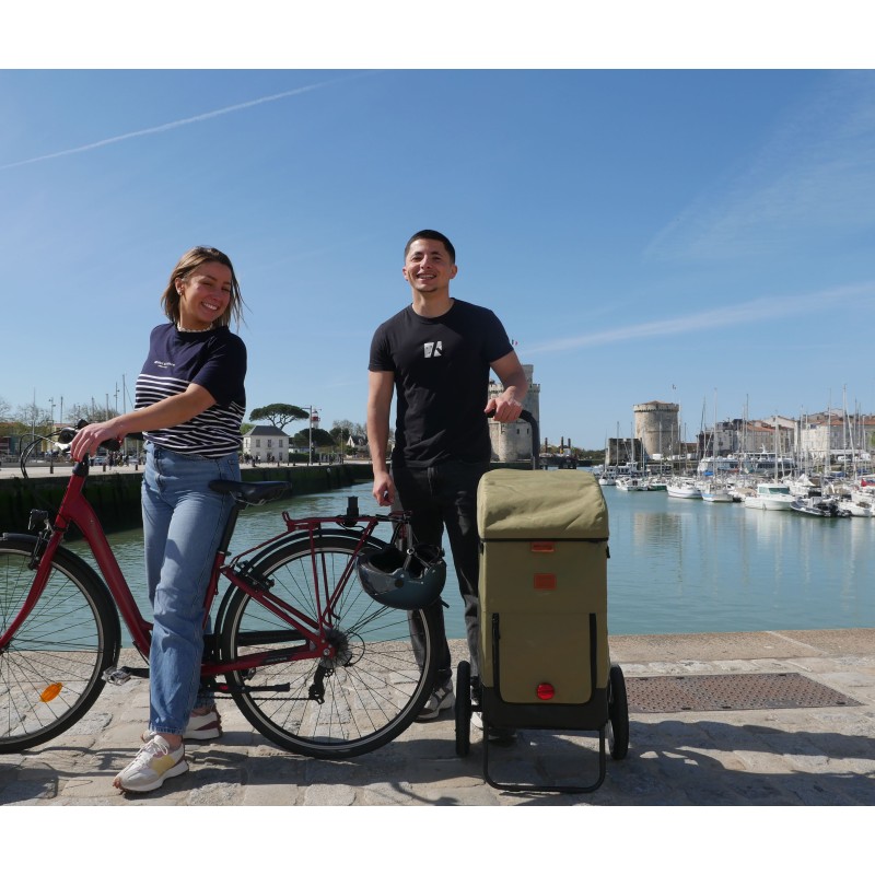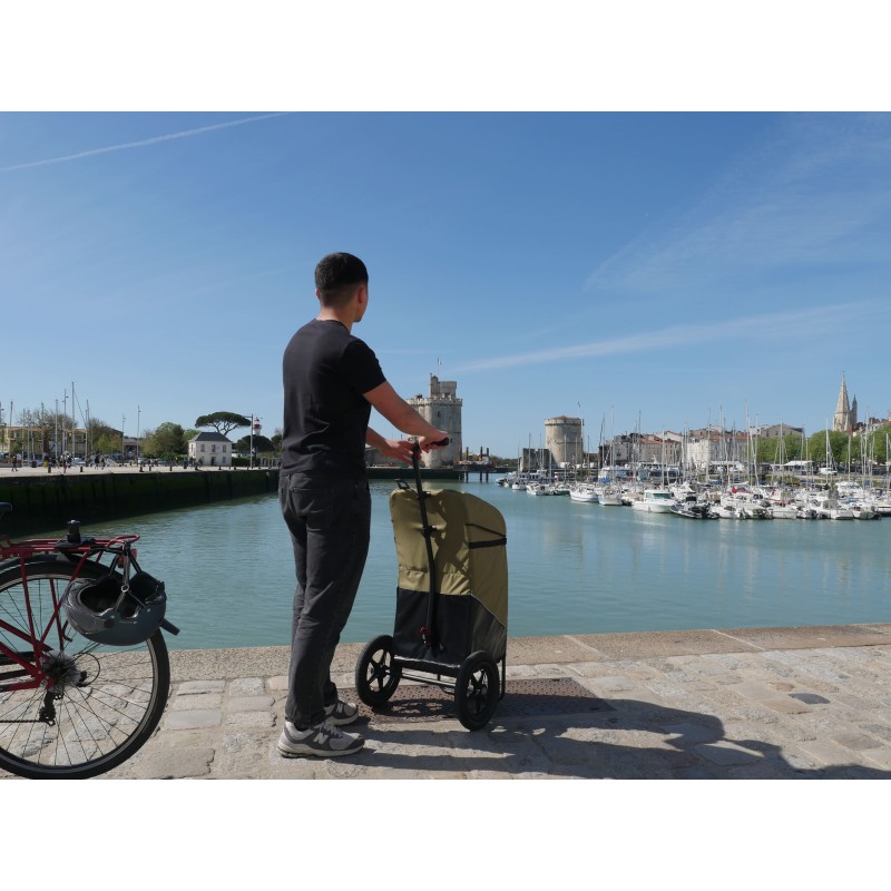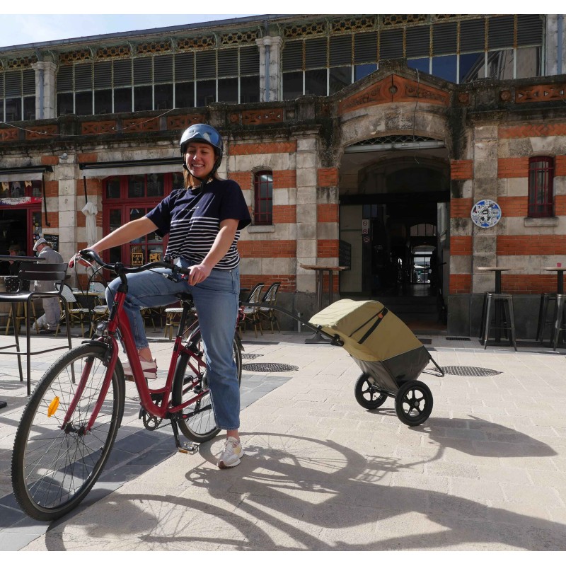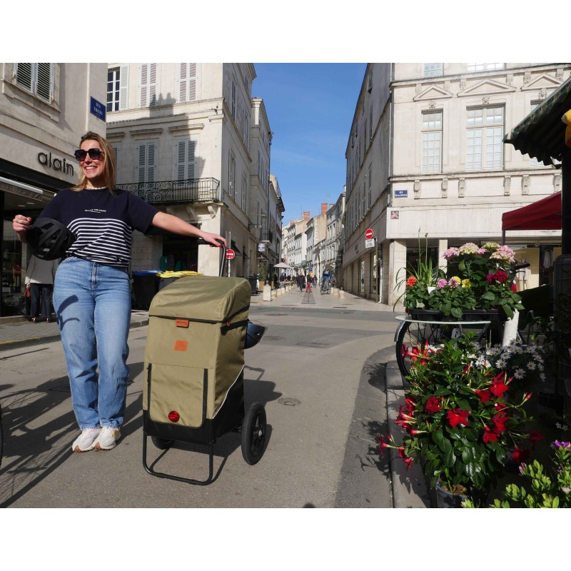 À vélo ou à pied, le Shopping Trailer Néo se distingue par sa facilité d'utilisation et sa maniabilité. Sa fixation au vélo est simple et il se transforme aisément en mode piéton ou vélo grâce à sa barre de traction pivotante, sans aucun outil.