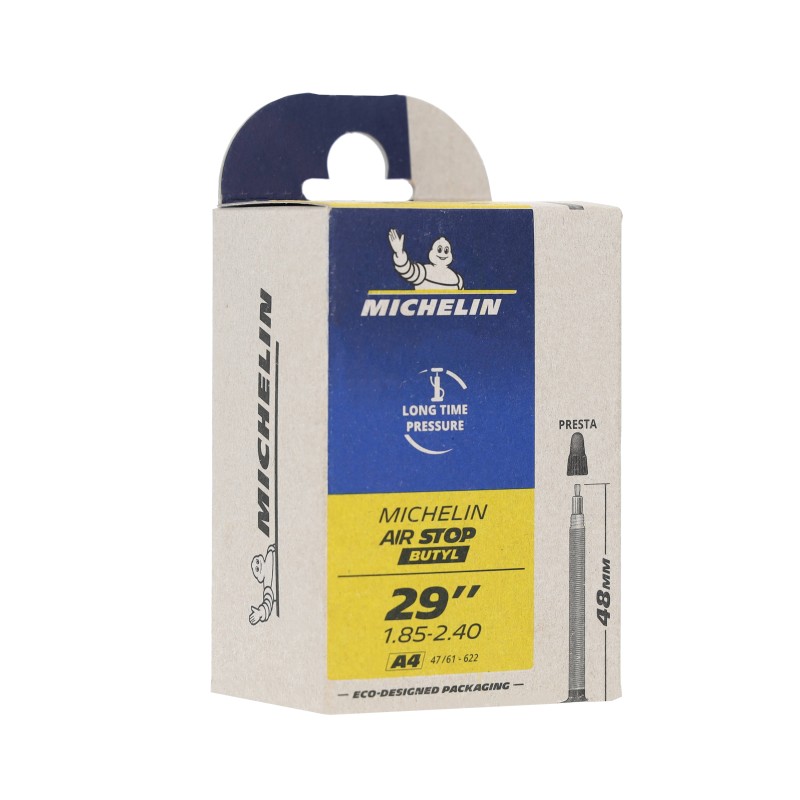 La chambre à air MICHELIN A4 AIRSTOP 29 x 1,85-2,40 47/61 x 622 PR48, référence CAI 335795 de la marque offre un bon maintien de la pression grâce au butyl et une bonne résistance aux crevaisons. C'est un standard du marché avec un excellent rapport Qualité/Prix.