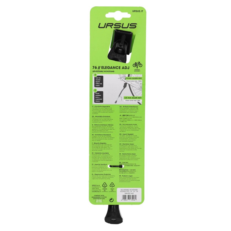 Les caractéristiques de la Béquille centrale URSUS Elegance Adjustable - black - 24'' / 26'' 28" (medium)