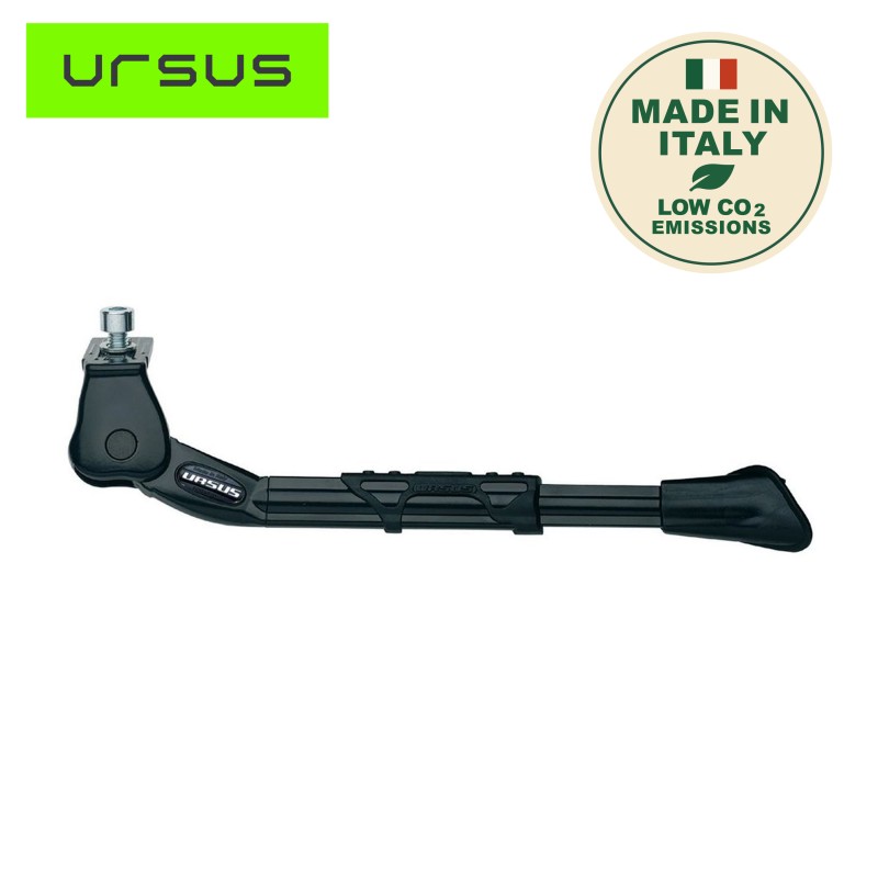 La béquille centrale King 78 noire de la marque URSUS, conçue en aluminium, convient aux vélos électriques, aux vélos équipés d'un siège enfant et de sacoches de voyage. Elle supporte une charge maximale de 35kg.