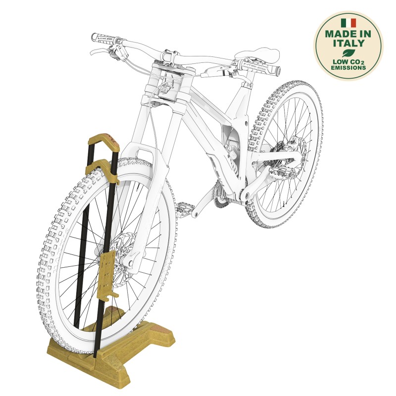 Le Support Vélo LYBRA + support x batterie de la marque PERUZZO est un support de vélo au sol breveté et pliable pour économiser de l'espace. Il accueille un espace support de chargeur pour les vélos électriques pour vous permettre de recharger facilement votre vélo.