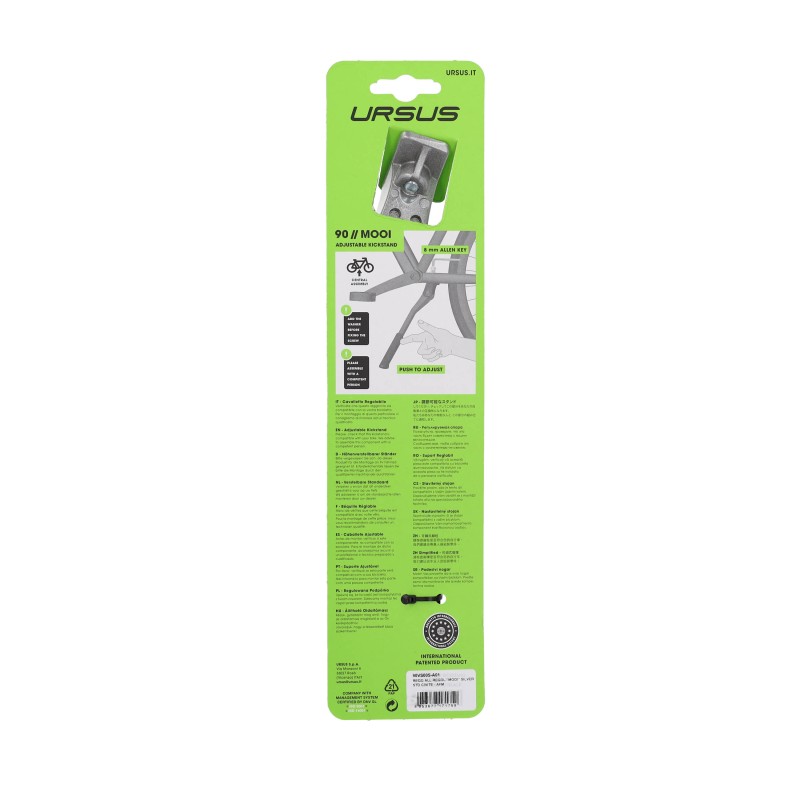La béquille centrale Mooi - silver réglable 24"-26"-28" de la marque URSUS est conçue en aluminium.