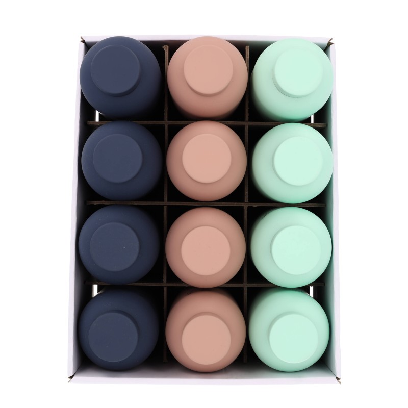 - Livrée en boite 'Prêt à vendre' de 12 bouteilles (3 rangées de 4 bouteilles de chaque couleur)