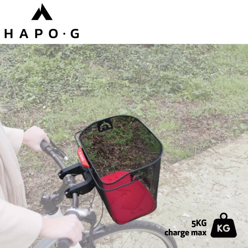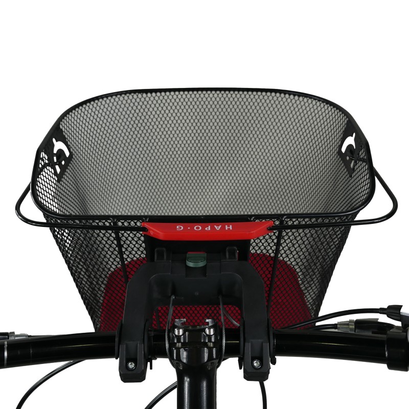 Le panier en acier noir de la marque HAPO-G se fixe sur les guidons de 22,2 à 31,8 mm de diamètre grâce à une fixation DMTS universelle.
