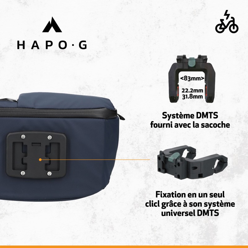 La sacoche de guidon de la marque HAPO-G est idéale pour vos déplacements à vélo. Elle est souple et moderne, parfaite pour un usage citadin. Elle offre une belle contenance de 7 litres et se clipse rapidement sur le cintre du vélo grâce à sa fixation DMTS.Une fois remplie, cette sacoche reste stable et rigide. Sa sangle amovible permet de...