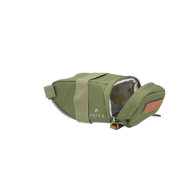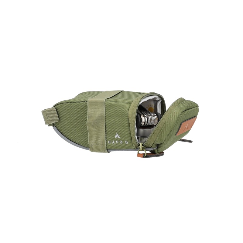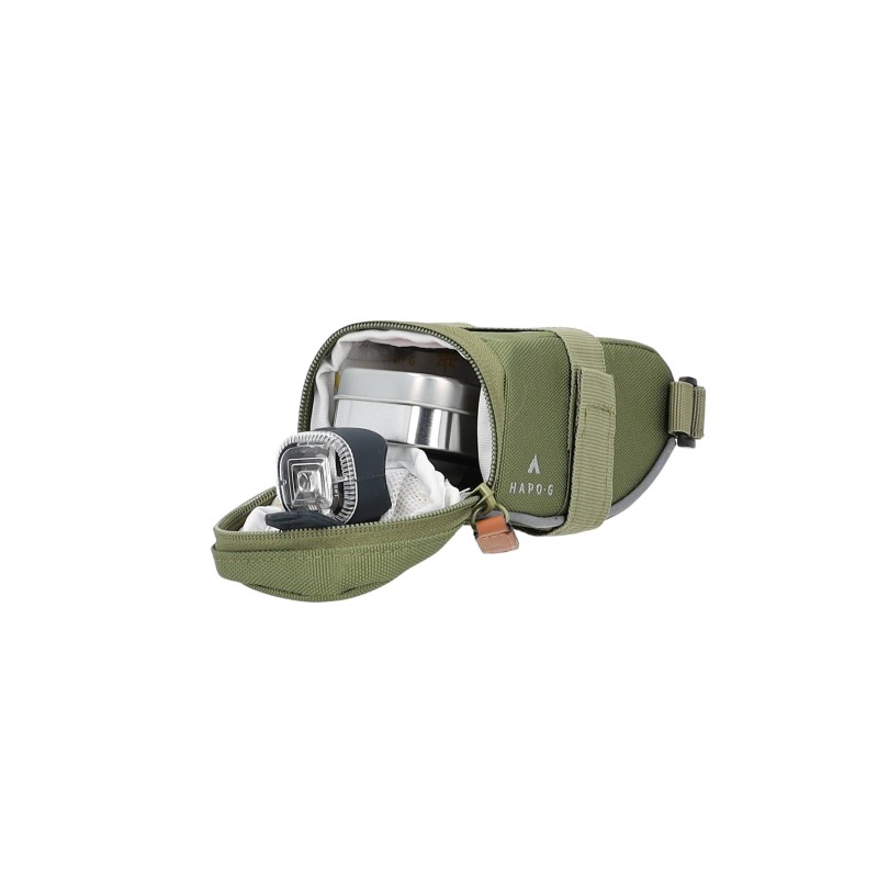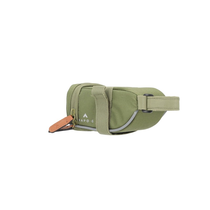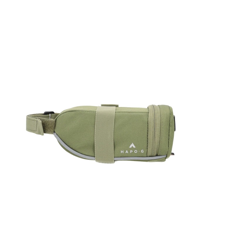La sacoche de selle de la marque HAPO G s'installe grâce à deux sangles sous la selle et dispose d'une contenance de 0,7 litres.