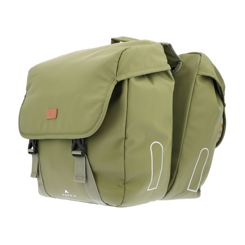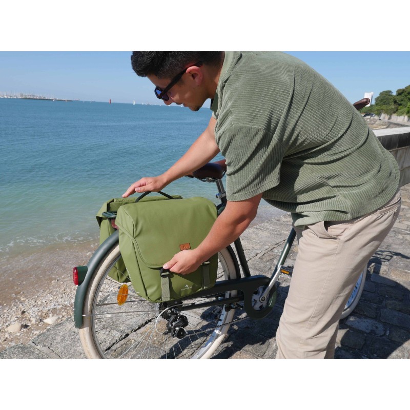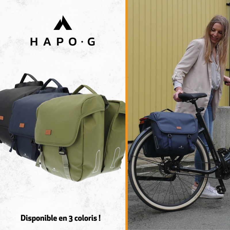 Sacoche double rigide à pont 2x13.5L de la marque Hapo-G a été conçue pour aborder les trajets vélos du quotidien avec style. Elle est imperméable et se fixe sur le porte-bagages arrière de votre vélo. Ses sangles de fixation permettent un accrochage et un décrochage rapides et intuitifs.