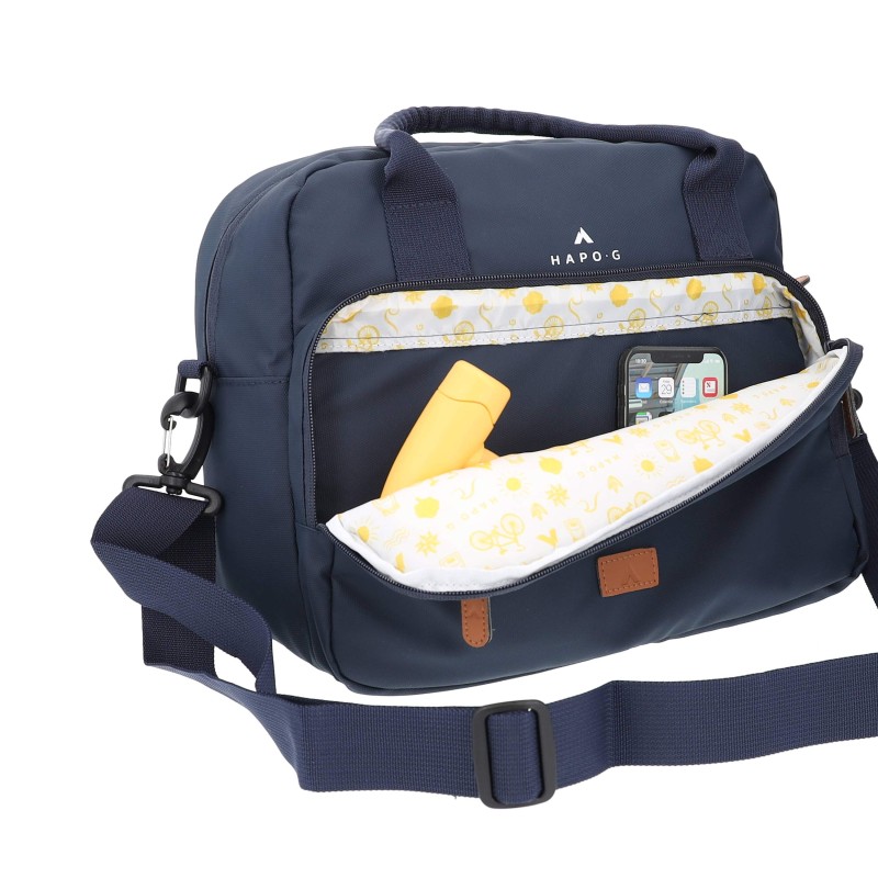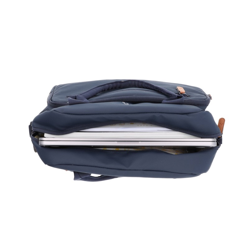 Elle s'installe facilement grâce à ses sangles velcro et boucles et dispose d'une contenance de 14 litres. Elle est transportable facilement grâce à ses larges anses ainsi qu'avec sa sangle en bandoulière amovible. Elle dispose de deux poches avant zippées. La poche principale comprend un compartiment renforcé pouvant accueillir une tablette ou un ordinateur de 13".