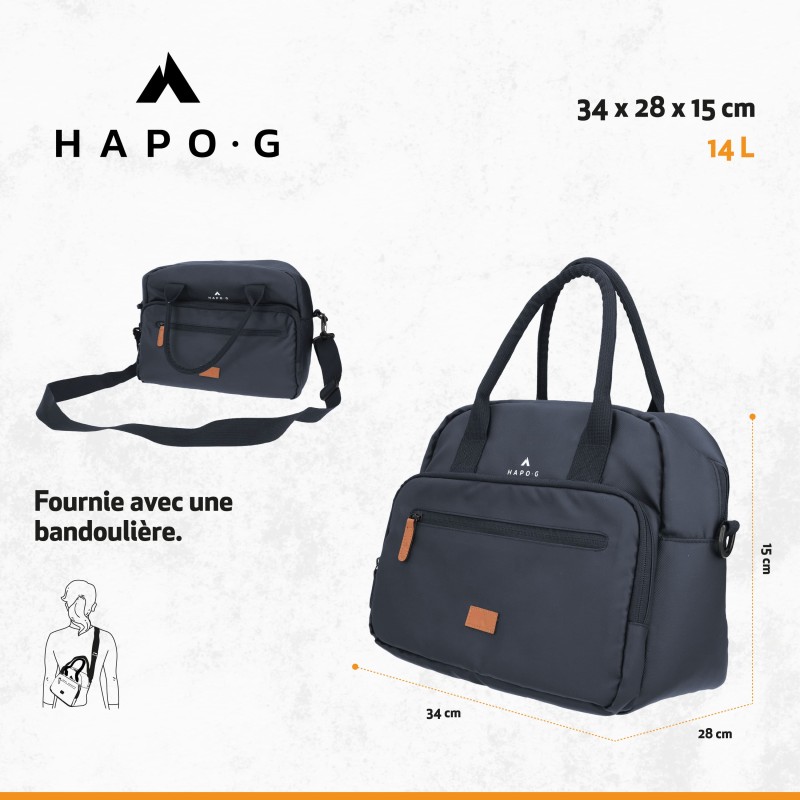 Cette sacoche vélotaf de la marque HAPO-G se fixe sur le porte-bagages du vélo et peut aussi se fixer sur le guidon.Elle s'installe facilement grâce à ses sangles velcro et boucles et dispose d'une contenance de 14 litres. Elle est transportable facilement grâce à ses larges anses ainsi qu'avec sa bandoulière amovible. Elle dispose de deux poches...