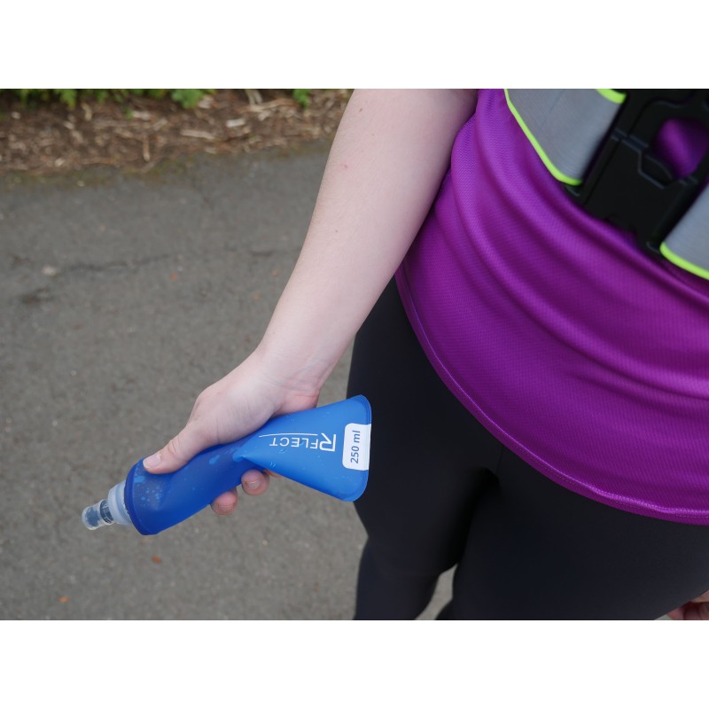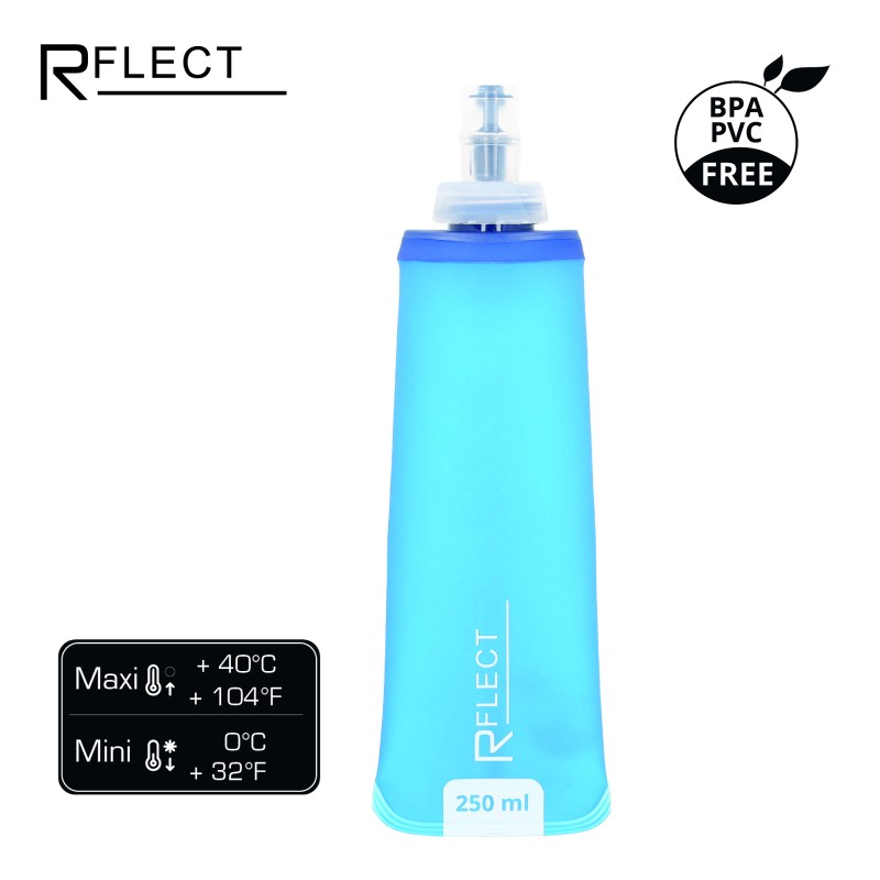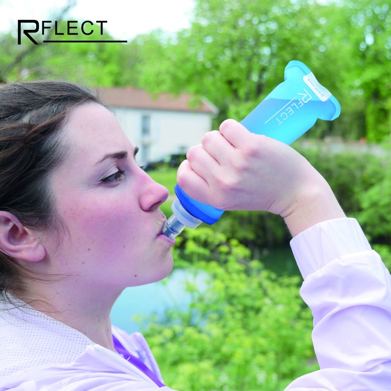 Gourde souple multisport 250 ML de la marque R FLECT, idéale pour faciliter votre hydratation lors de vos sorties de course à pied et autres activités sportives.