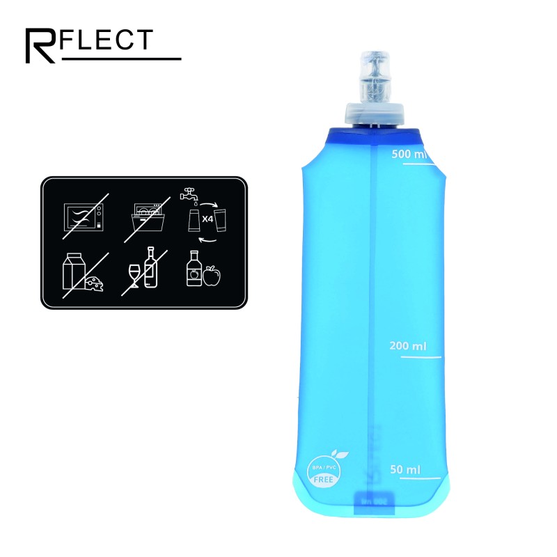 Gourde souple multisport 500 ML de la marque R FLECT, idéale pour faciliter votre hydratation et transporter vos boissons au cours de vos trails, sorties running ou toute autre activité sportive.