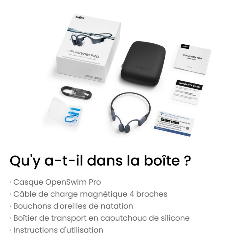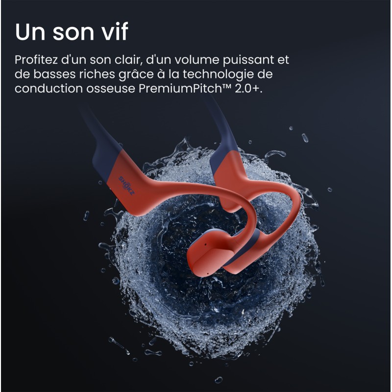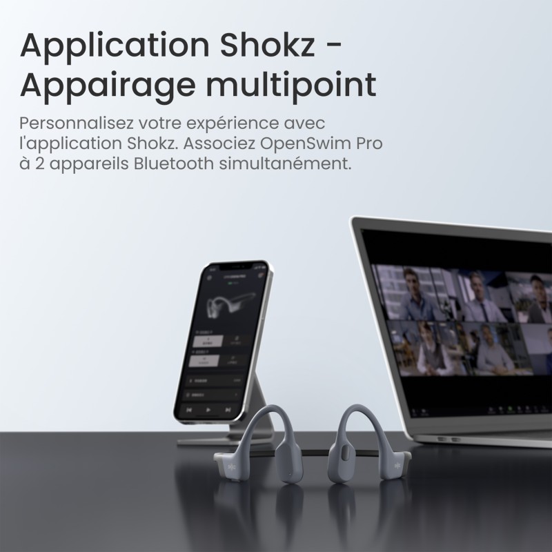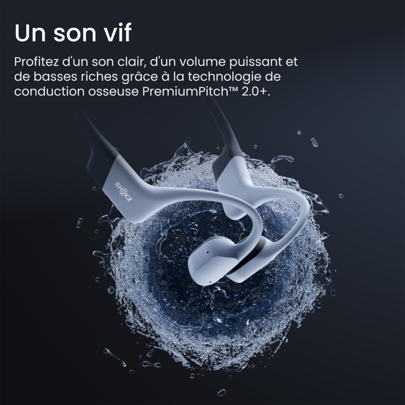 Basculez facilement entre les deux modes grâce à un bouton intuitif ou via l'application Shokz. Profitez d’une meilleure expérience d’écoute avec ses 32 Go de stockage MP3 intégrés. Bénéficiez d’une qualité sonore supérieure et de basses intenses grâce à la technologie PremiumPitch™ 2.0+. Avec l'OpenSwim Pro, soyez conscient de votre environnement et restez à l’écoute du monde qui vous entoure. Avec son design innovant composé de crochets auriculaires souples, l’Openswim pro vous assure un port agréable et exempt de pression. L’indice d’étanchéité IP68 vous garantit une résistance à l’eau parfaite.