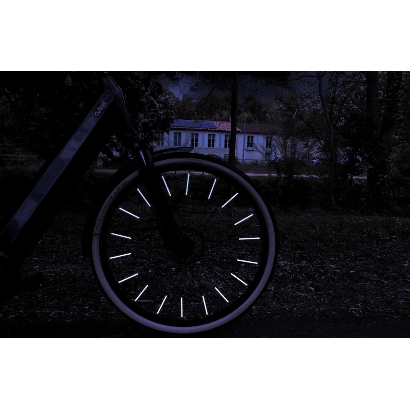 Faciles à placer sur les rayons de la roue, ces réflecteurs sont vendus par 18 unités.